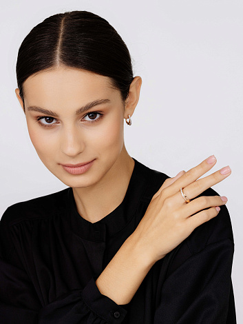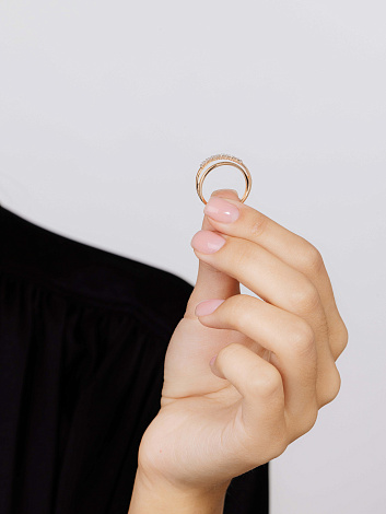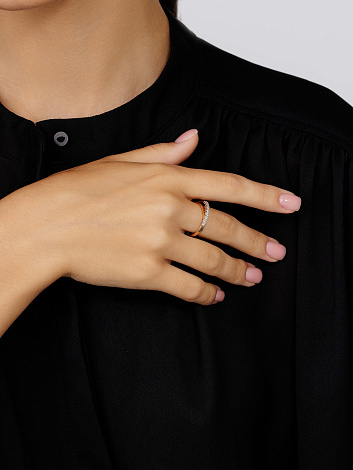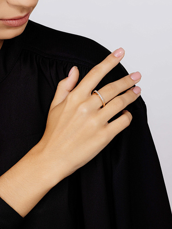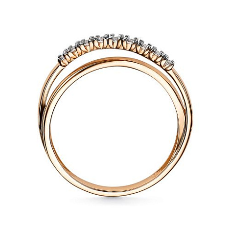 Элегантное кольцо, украшенное дорожкой сверкающих бриллиантов, выполнено из красного золота 585 пробы