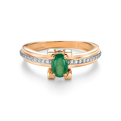 Роскошное кольцо из красного и белого золота 585 пробы с крупным изумрудом и россыпью бриллиантов