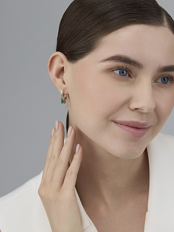 Серьги с изумрудами и бриллиантами выполнены из белого и красного золота 585 пробы