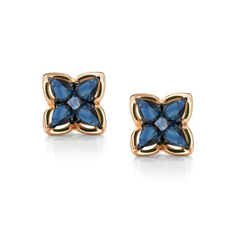 Роскошные серьги - пусеты, выполнены из красного золота 585 пробы, украшены темно-синими сапфирами
