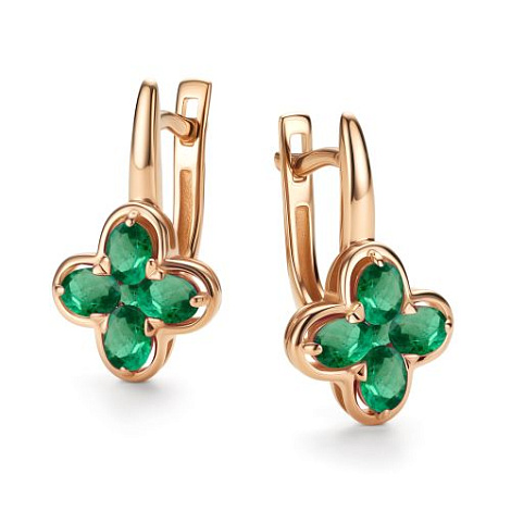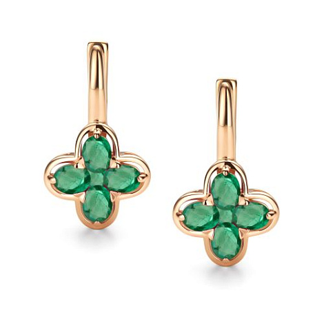Нежные серьги выполненные из красного золота 585 пробы, украшены изумрудами