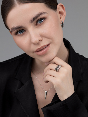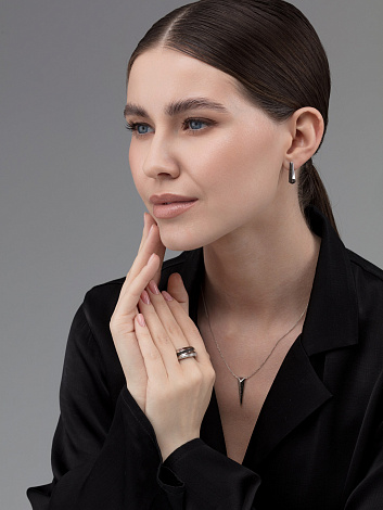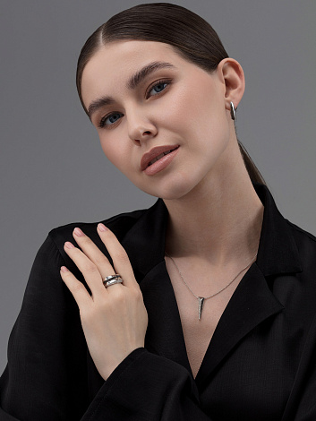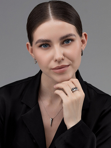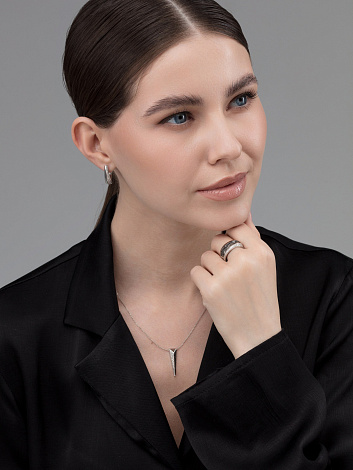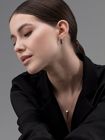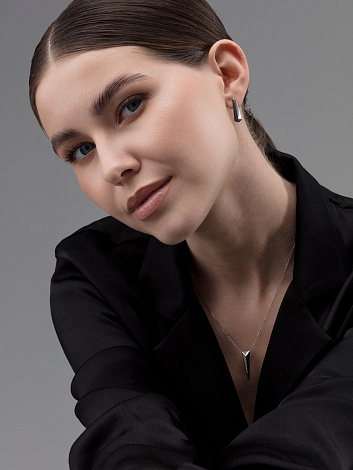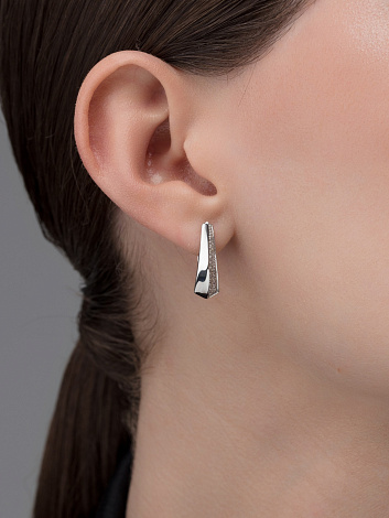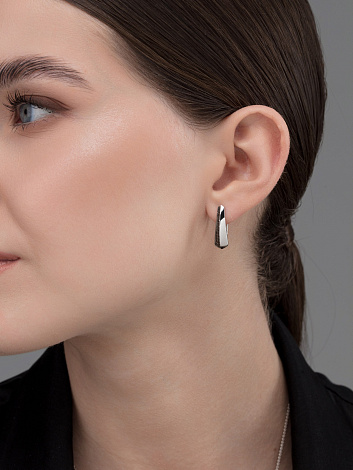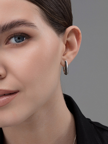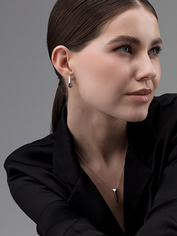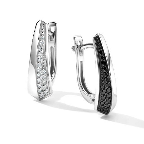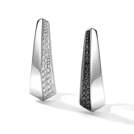 Нежные серьги, украшенные чёрными и бесцветными сверкающими бриллиантами, выполнены из белого золота 585 пробы