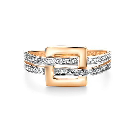 Очаровательное кольцо в сочетании красного и белого золота 585 пробы с россыпью драгоценных камней