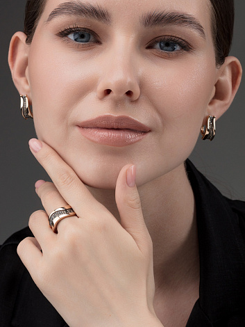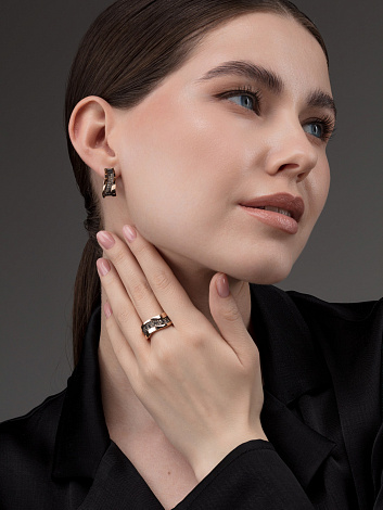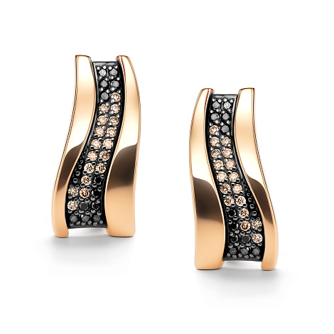 Серьги из коллекции Gradient — это ювелирное воплощение европейского вкуса и цветовой игры. Плавный переход оттенков от глубокого чёрного к тёплому коньячному создаёт эффект градиента, подчёркивая объём, форму и блеск украшения. Изделие выполнено из благородного красного золота 585 пробы, которое идеально сочетается с насыщенными оттенками бриллиантов. Эта модель подойдёт для женщин, которые ценят стиль, индивидуальность и тренды высокого ювелирного дизайна. Средняя характеристика камней: 24 Бриллиант Круг 57 0.154 7/6 черный(HPHT) 34 Бриллиант Круг 57 0.198 7/6 коньяк В комплект поставки входит: