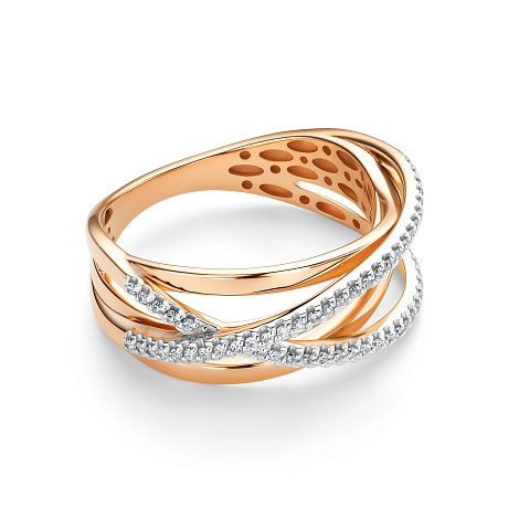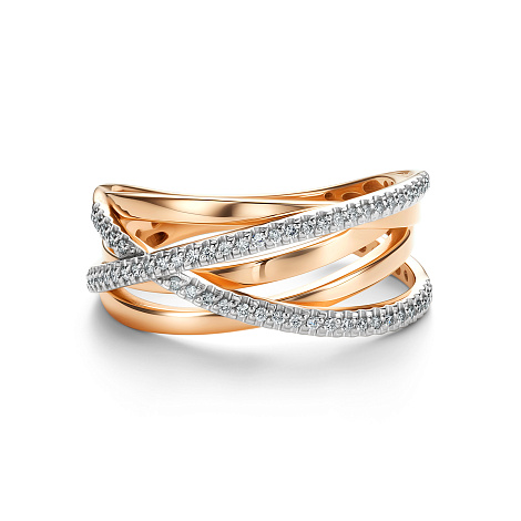 Элегантное кольцо, украшенное дорожкой сверкающих бриллиантов, выполнено из красного золота 585 пробы