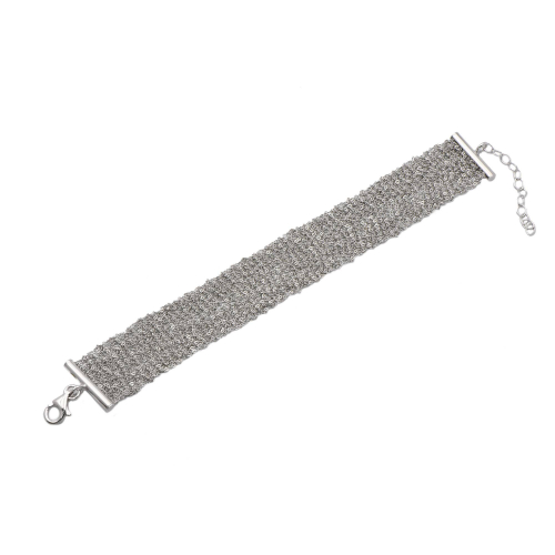 Объёмный и стильный браслет из серебра 925 пробы. Базовая длина 16 см, а благодаря дополнительным звеньям она регулируется до 20 см. Изделие покрыто родием - который придает холодный блеск. Средний вес 10,5 гр. В комплект поставки входит: