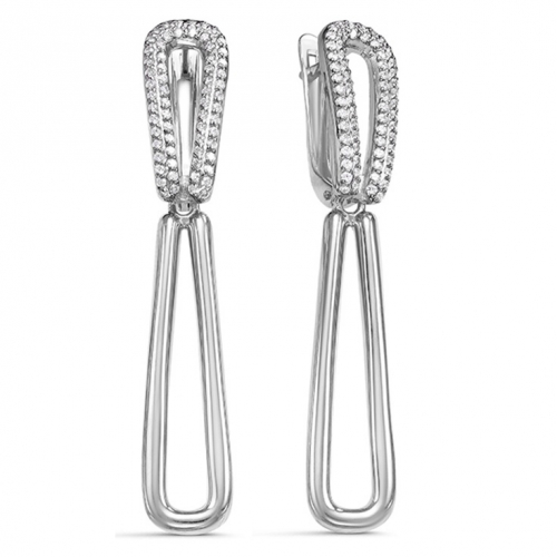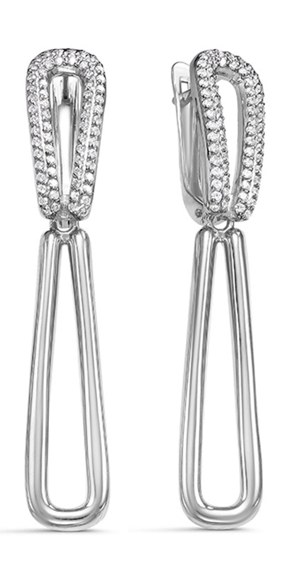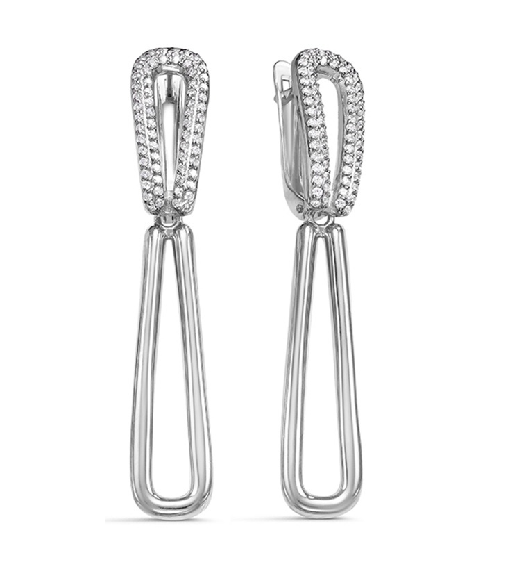 Элегантные серебряные серьги с современным дизайном: изогнутая верхняя часть, инкрустированная фианитами, плавно переходит в длинную изящную подвеску, создавая динамичный и лаконичный образ. Блестящие фианиты, аккуратно встроенные в оправу, переливаются в каждом свете, даря искрящийся эффект. Надежный английский замок и родиевое покрытие гарантируют долговечность, сохраняя зеркальный блеск и защищая от потускнения. Эти серьги — идеальный акцент для любого образа, сочетающий в себе современный стиль и вечную элегантность. В комплект поставки входит: