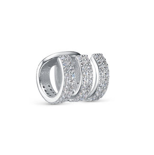 Элегантный серебряный кафф с динамичным дизайном: три изогнутые полосы, усыпанные сверкающими фианитами, создают объемный узор, переливающийся в каждом луче света