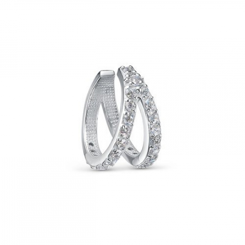 Элегантный серебряный кафф с изысканным дизайном: две переплетенные полосы, усыпанные сверкающими фианитами, создают динамичный узор, переливающийся в каждом движении