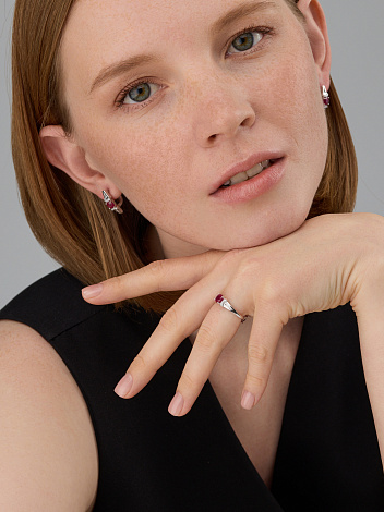 Элегантные серебряные серьги из серебра 925 пробы украшены роскошными рубинами и сверкающими фианитами