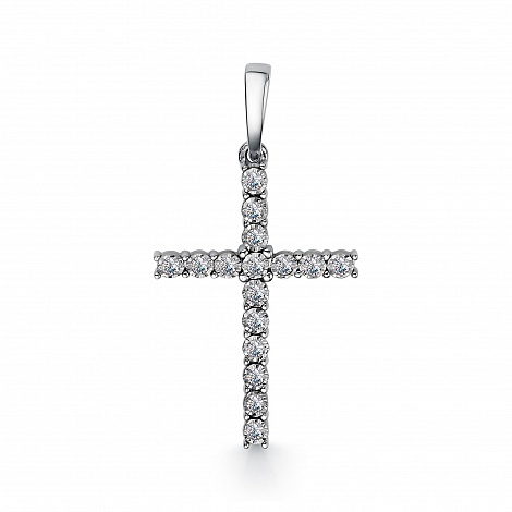 Подвеска, в виде креста, выполнена из белого золота 585 пробы, украшена россыпными дорожками сияющих бриллиантов