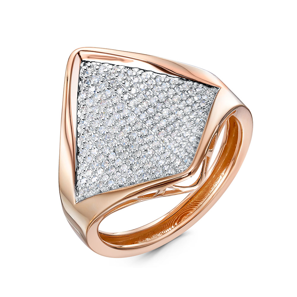 Роскошное кольцо из красочного сочетания красного и белого золота 585 пробы украшено мелкой россыпью бриллиантов