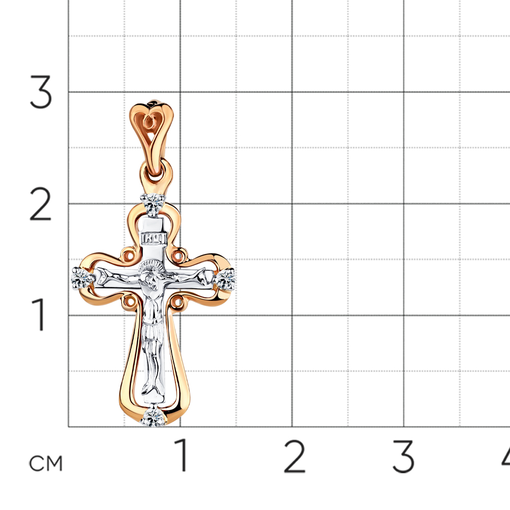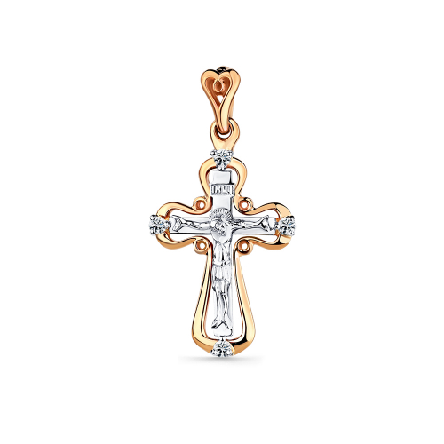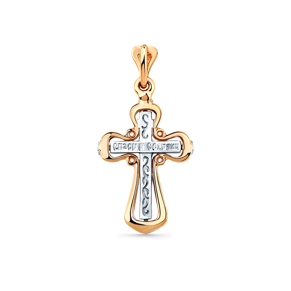 Элегантный крест из комбинированного золота 585 пробы — это гармоничное сочетание двух оттенков благородного металла, подчёркивающее символику и декоративную выразительность изделия