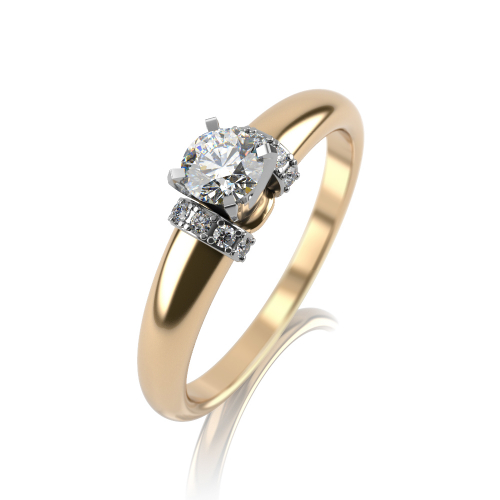 Стильное помолвочное кольцо, выполненное в сочетании белого и желтого золота 585 пробы и украшенное бриллиантами
