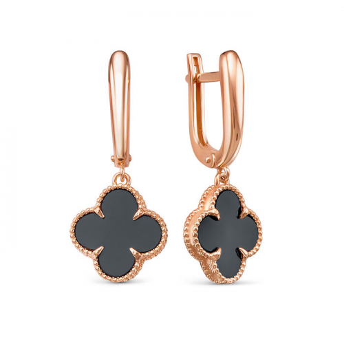 Стильные удлиненные серьги выполнены из красного золота 585 пробы с черным ониксом