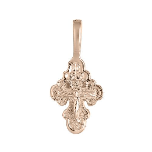 Изящный православный крестик выполнен из красного золота 585 пробы, в нем исполнены все каноны Православной Церкви