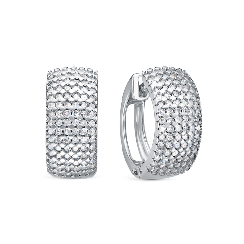 Объёмные серьги, украшенные сверкающей россыпью бриллиантов, выполнены из белого золота 585 пробы