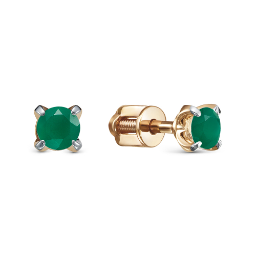 Изящные серьги - пусеты с натуральными изумрудами выполнены из красного золота 585 пробы