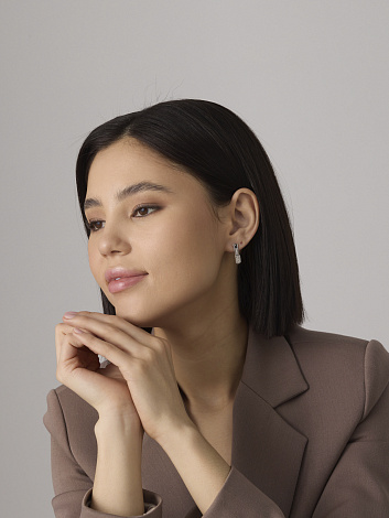 Стильные серьги из белого золота 585 пробы украшены сверкающими бриллиантами