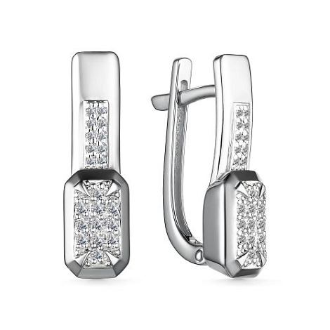 Стильные серьги из белого золота 585 пробы украшены сверкающими бриллиантами. Украшение дополнительно покрыто родием - металл платиновой группы, который защищает золото от внешних воздействий и придает искрящийся яркий блеск. Замок английский- самый надежный и удобный. Изделие представленно брендом АЛЬКОР. Средняя характеристика камней: 20 Бриллиант Круг 57 0.067 4/5; 22 Бриллиант Круг 57 0.149 4/5. В комплект поставки входит: