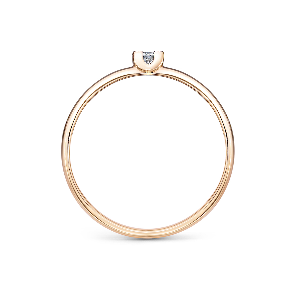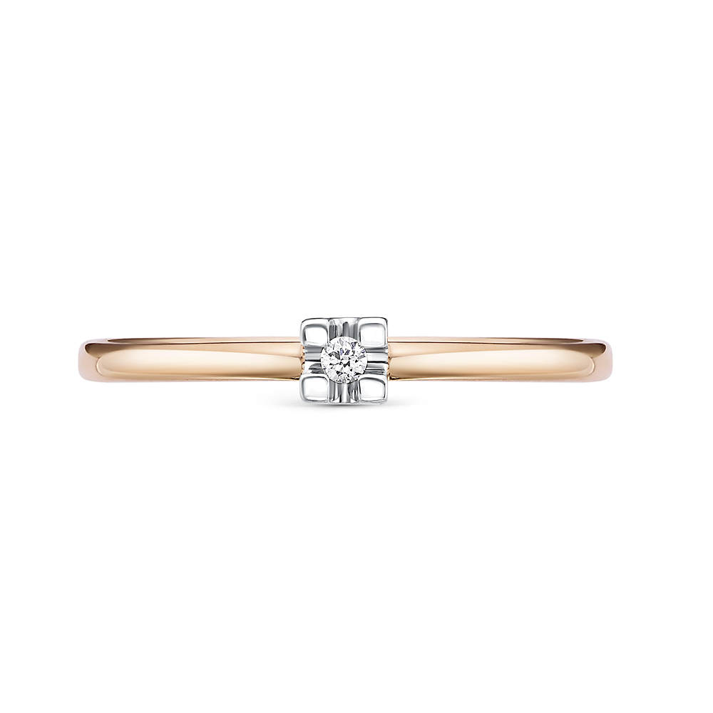 Изящное кольцо с сверкающим бриллиантом выполнено из красного золота 585 пробы