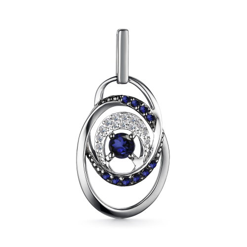 Изящная подвеска из белого золота 585 пробы впечатляет наличием крупного чистого сапфира, подчеркнутого игрой бриллиантов
