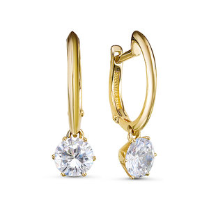 Нежные серьги с подвесом, выполнены из желтого золота 585 пробы, украшены сверкающими фианитами