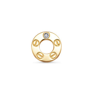 Стильная подвеска-бегунок с фактурной обработкой выполнена из жёлтого золота 585 пробы, украшена искрящимся фианитом. Блеск металла и оправа камня позволяет лучам света играть на их поверхности, притягивая взгляды. Изделие представлено брендом "DEL`TA" коллекция "Cartier style". Средняя характеристика камней на артикул: 1 Фианит. В комплект поставки входит: