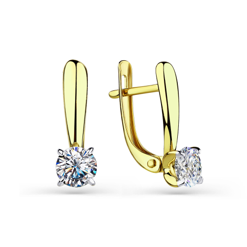 Элегантные серьги классического дизайна с сверкающими фианитами выполнены из желтого золота 585 пробы
