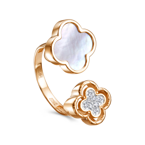 Изящное кольцо с перламутровой вставкой и сверкающими бриллиантами, создает ощущение легкости и элегантности