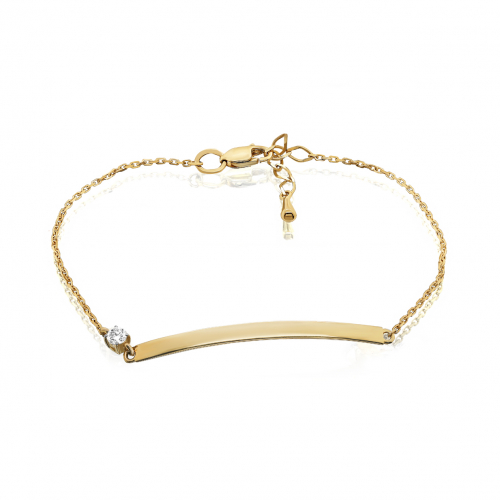 Изящный цепочный браслет с стильной жёсткой вставкой, украшенной бриллиантом, выполнен из жёлтого золота 585 пробы
