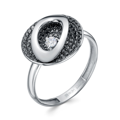 Изящное кольцо из белого золота 585 пробы украшено сверкающими белыми и таинственными черными бриллиантами