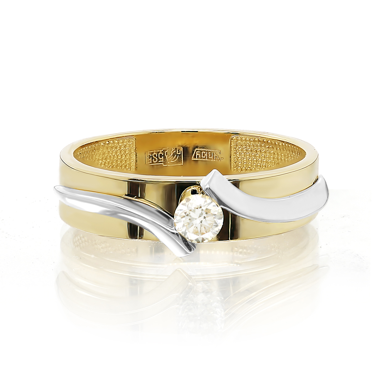Роскошное кольцо с бриллиантом редкого оттенка "Шампань", выполнено с сочетанием жёлтого и белого золота 585 пробы. Лимонное золото особым образом подчёркивает красоту и блеск драгоценного камня, а изящные линии белого золота делают акцент и притягивают взгляд.