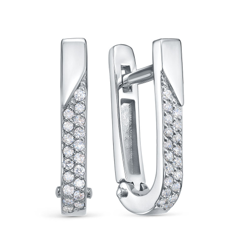 Элегантные серьги выполнены из платины 950 пробы и украшены сверкающими белыми бриллиантами