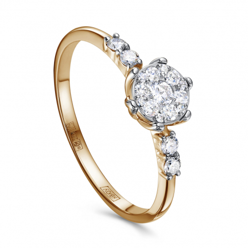 Изящное кольцо из благородного сочетания красного и белого золота 585 пробы украшено сверкающими бриллиантами