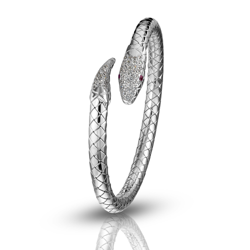 Изящный серебряный браслет 925 пробы в виде змеи украшен сверкающими циркониевыми вставками