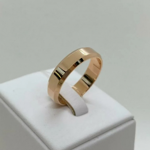Полновесное обручальное кольцо с прямым профилем "шайба", выполнено из красного золота 585 пробы, особую оригинальность кольцу придают скошенные края в сочетании с идеально гладкой поверхностью кольца