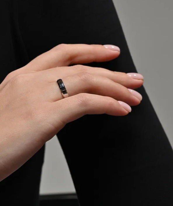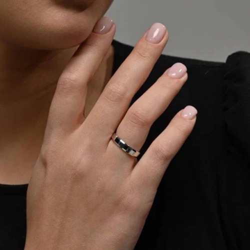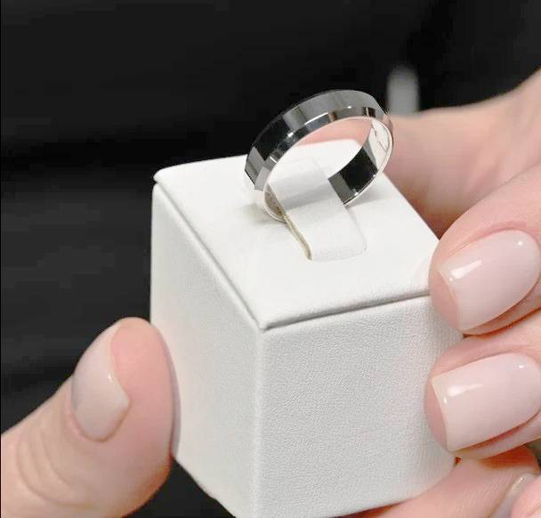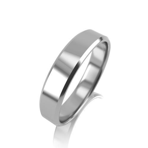 Полновесное обручальное кольцо с прямым профилем "шайба", выполнено из белого золота 585 пробы, особую оригинальность кольцу придают скошенные края в сочетании с идеально гладкой поверхностью кольца
