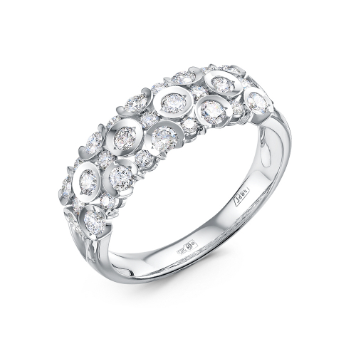 Яркое кольцо выполнено из белого золота 585 пробы, украшено великолепными сияющими бриллиантами