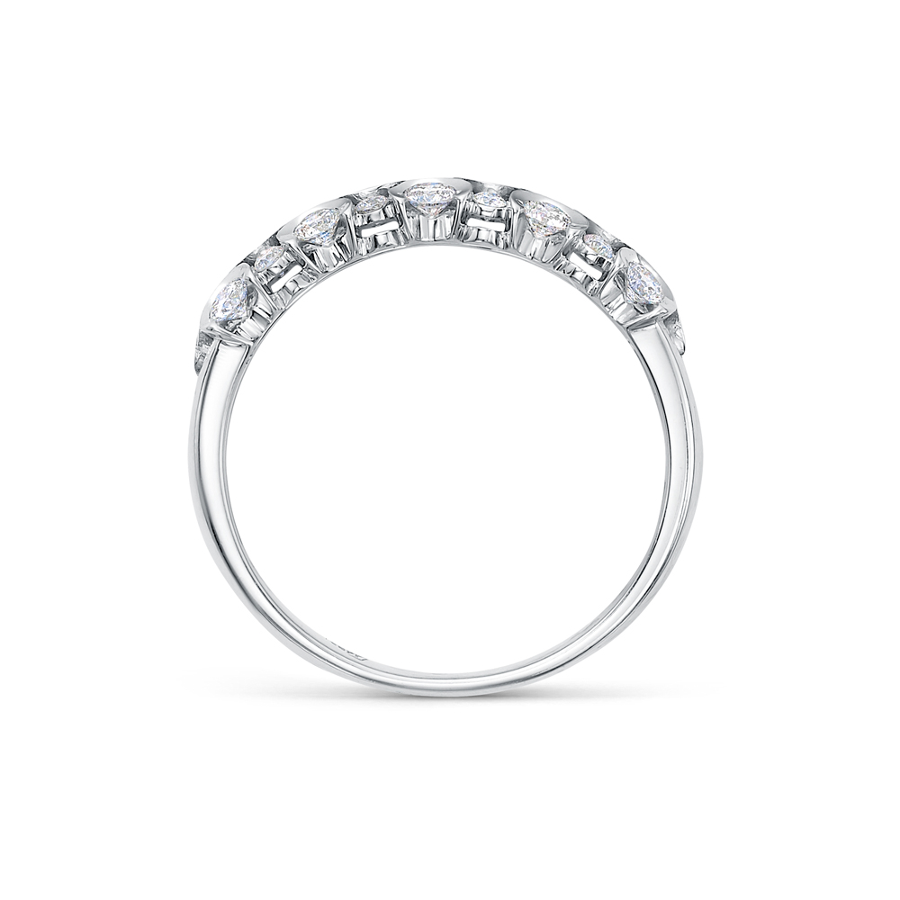 Яркое кольцо выполнено из белого золота 585 пробы, украшено великолепными сияющими бриллиантами. Такое украшение дополнит любой Ваш образ. Изделие представлено брендом ROSE GRACE. Средняя характеристика камней: 16 Бр Кр 57 2,20 25-20 4/6А - 0,64 ct.; 5 Бр Кр 57 1,75 60-40 4/6А - 0,115 ct.; 8 Бр Кр 57 1,50 90-60 4/6А - 0,112 ct. В комплект поставки входит: