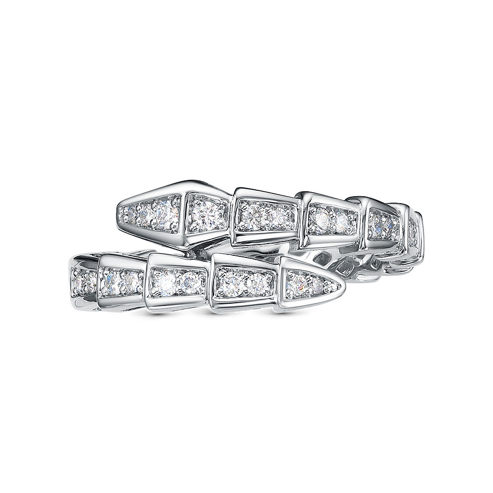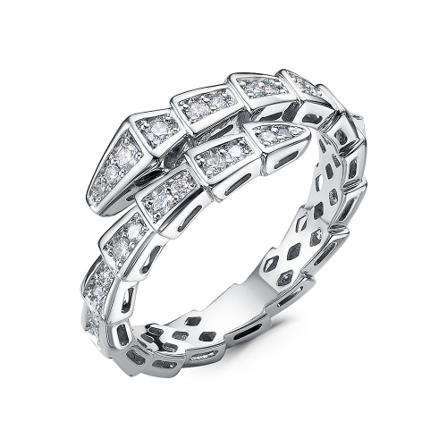 Элегантное кольцо с оригинальным дизайном из отдельных звеньев, украшенных бриллиантами, выполнено из белого золота 585 пробы