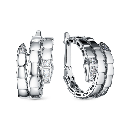 Эффектные серьги в форме змей выполнены из высококачественного белого золота 585 пробы и инкрустированы великолепными бриллиантами