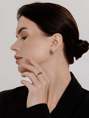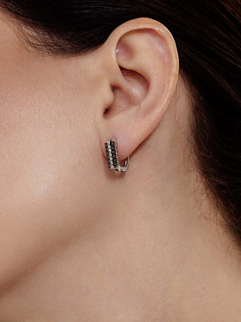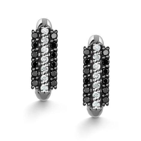 Элегантные серьги из белого золота 585 пробы, украшенные контрастными черными и белыми бриллиантами. Надежный английский замок обеспечивает удобную фиксацию. Ультрамодный дуэт черного и белого подчеркивает стиль и современность обладательницы. Представлено брендом АЛЬКОР. Средняя характеристика камней: 14 Бриллиант Круг 57 0.135 4/5, 24 Бриллиант Круг 57 0.263 7/6 черный(HPHT) В комплект поставки входит: