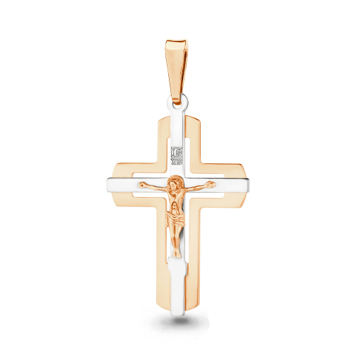 Православный крест, в котором исполнены все каноны Православной Церкви, выполнен в сочетании красного и белого золота 585 пробы.