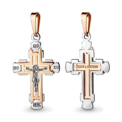 Православный крест, в котором исполнены все каноны Православной Церкви, выполнен в сочетании красного и белого золота 585 пробы