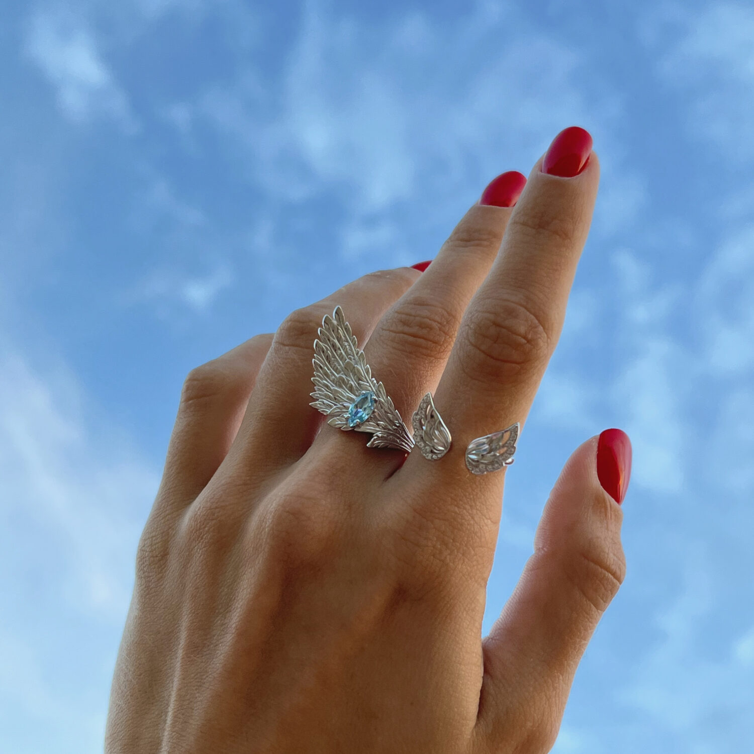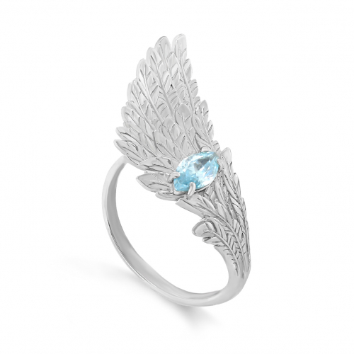Стильное кольцо из коллекции "Обретая крылья" от бренда KABAROVSKY с голубым фианитом, выполнено из серебра 925 пробы