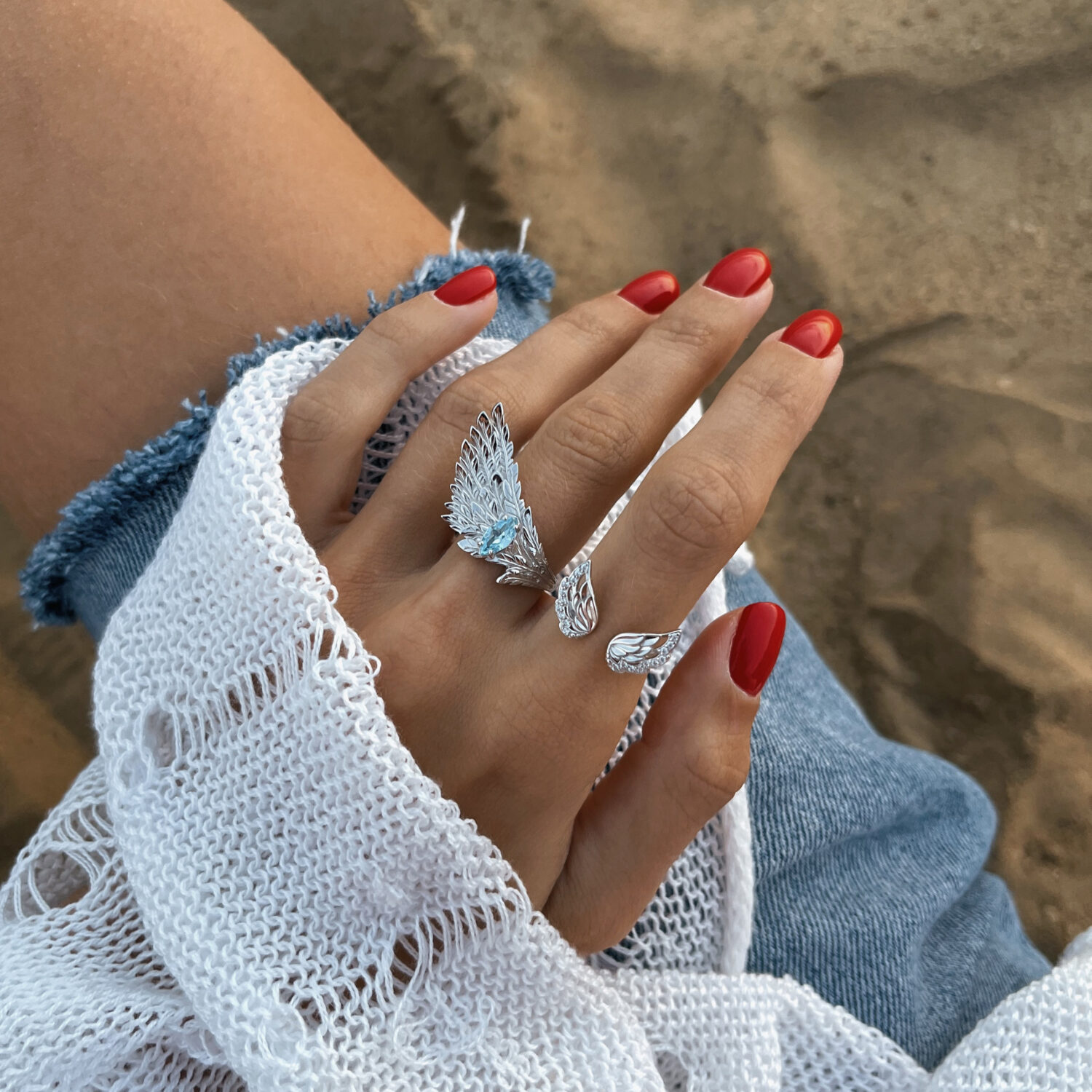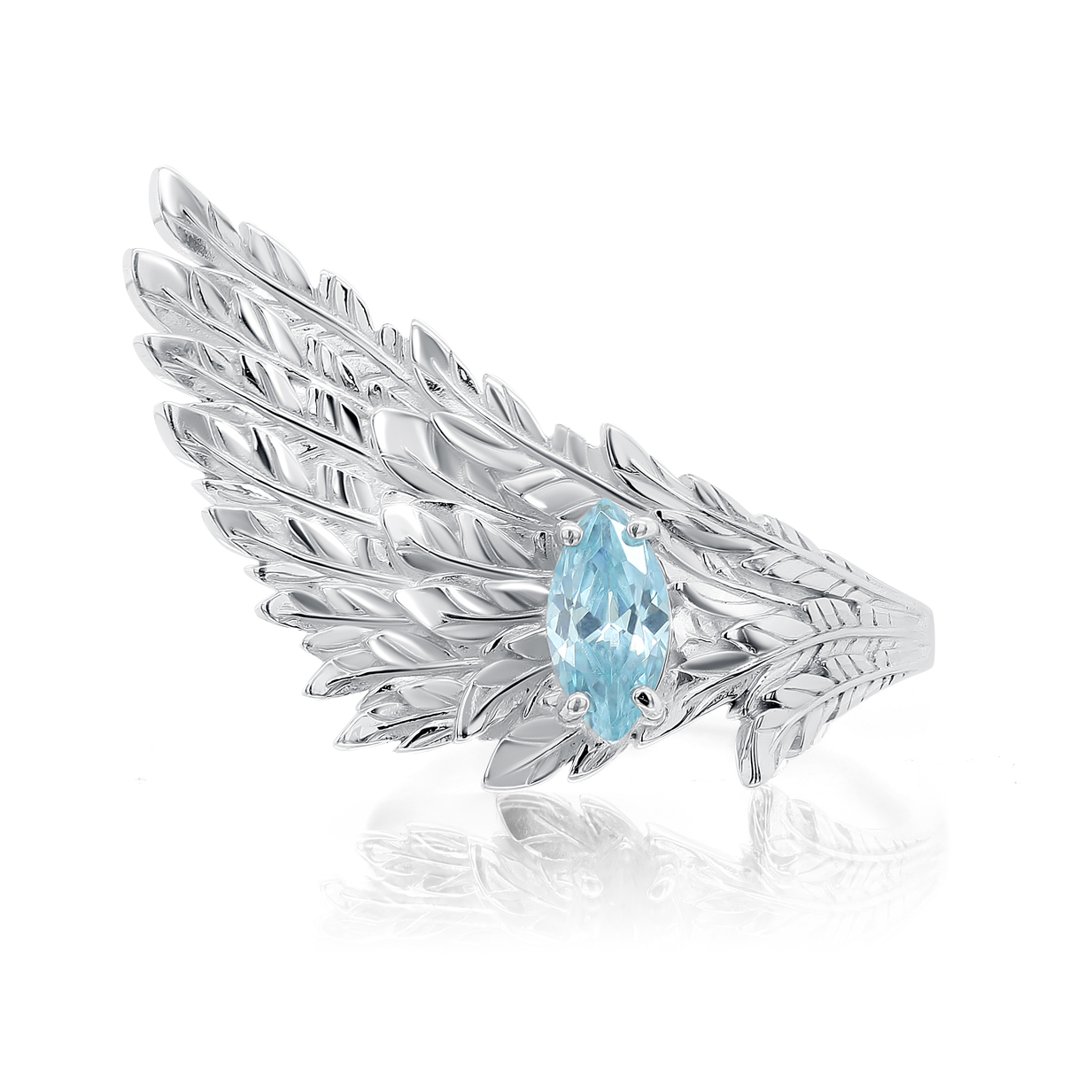 Стильное кольцо из коллекции "Обретая крылья" от бренда KABAROVSKY с голубым фианитом, выполнено из серебра 925 пробы. Такое кольцо является воплощением креативности и современных трендов, и станет актуальным дополнением к вашему образу.Украшение покрыто металлом платиновой группы - родием, он защищает серебро от потемнения и придает искрящийся яркий блеск. Средняя характеристика камней: 1 Фианит Маркиз 8х4. В комплект поставки входит: