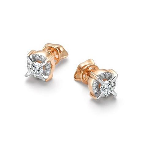 Изысканные серьги-пусеты из красного и белого золота 585 пробы, украшенные бриллиантами