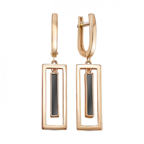 Удлинённые серьги из красного золота 585 пробы с ониксом и английским замком