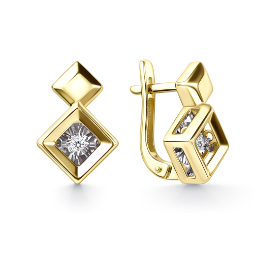 Элегантные серьги из жёлтого и белого золота 585 пробы с танцующими бриллиантами